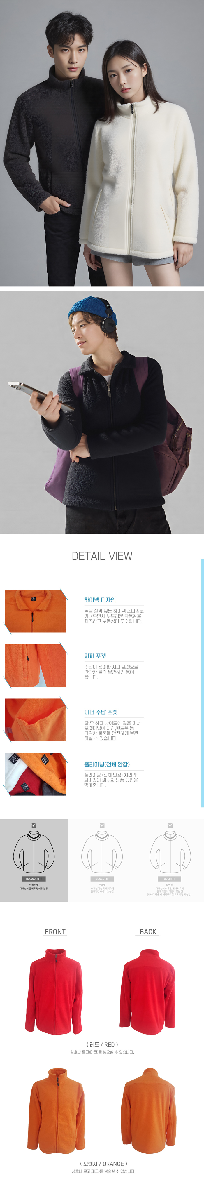 5개 색상 , 외부 방풍을 막아주면서도 가벼운 경량 폴라플리스 자켓, 투웨이 지퍼 사용으로 기능성을 향상시킨 제품