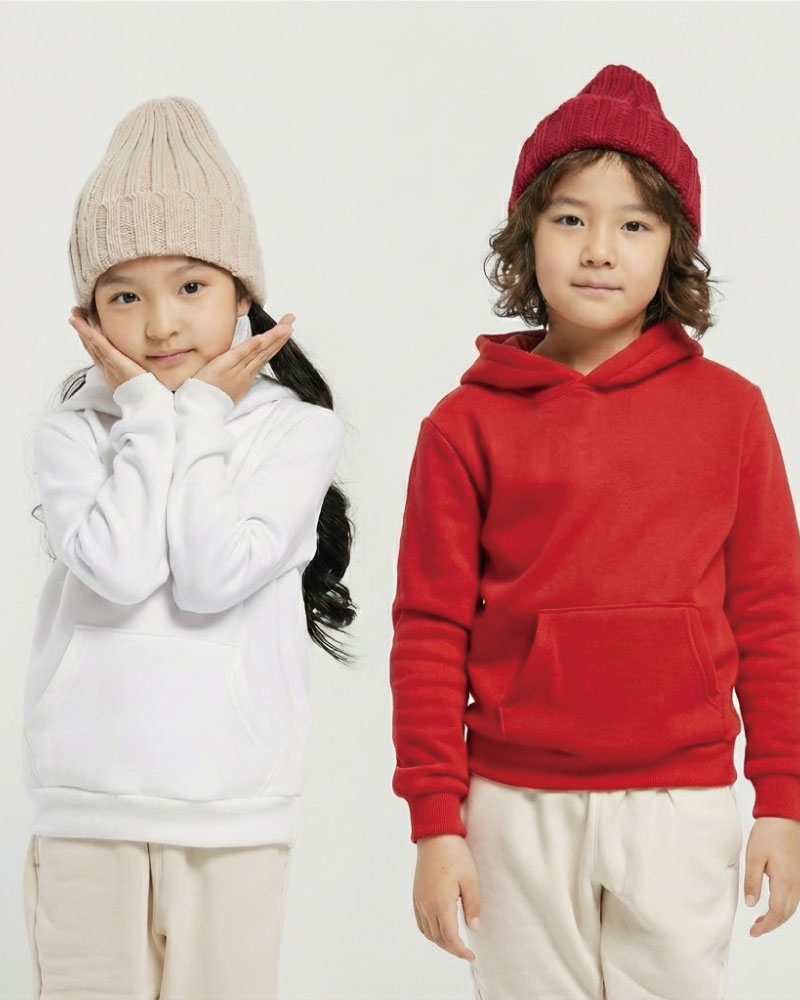 9개 색상, 특양면 아동용 후드티 스타일로 단체티 및 데일리룩으로 활용하기 좋은 캐쥬얼한 디자인의 제품