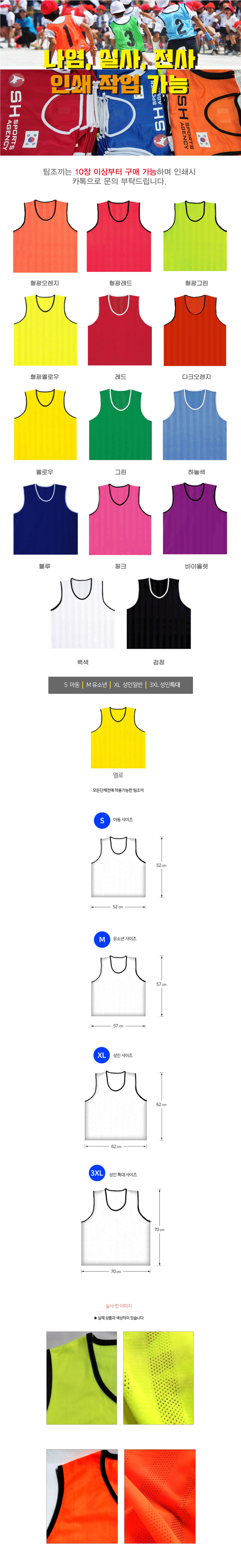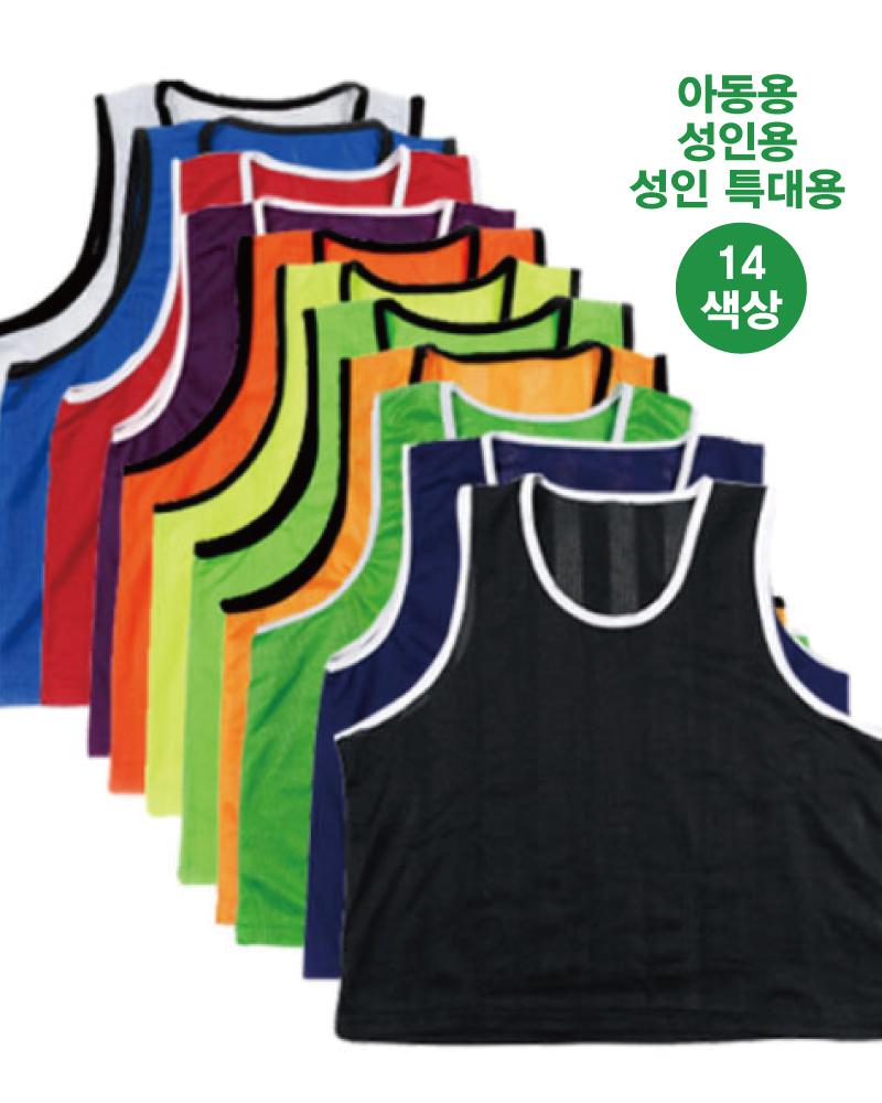 14개 색상 , 축구팀조끼 및 각종 생활체육활동에 적합한 가성비 좋은 망사 팀조끼 (아동,유소년,성인일반,성인 특대형 사이즈)