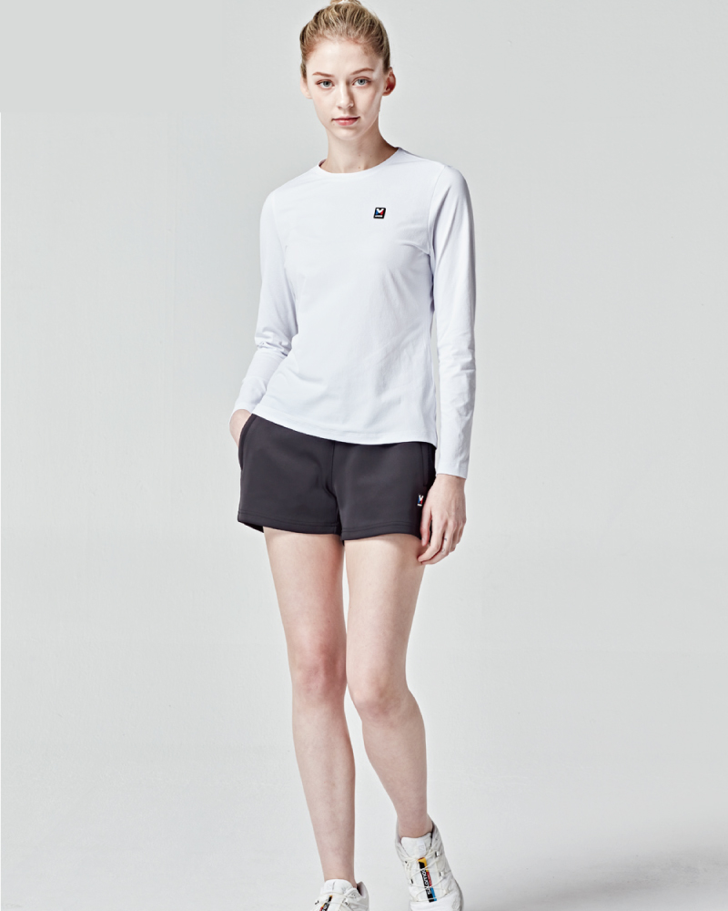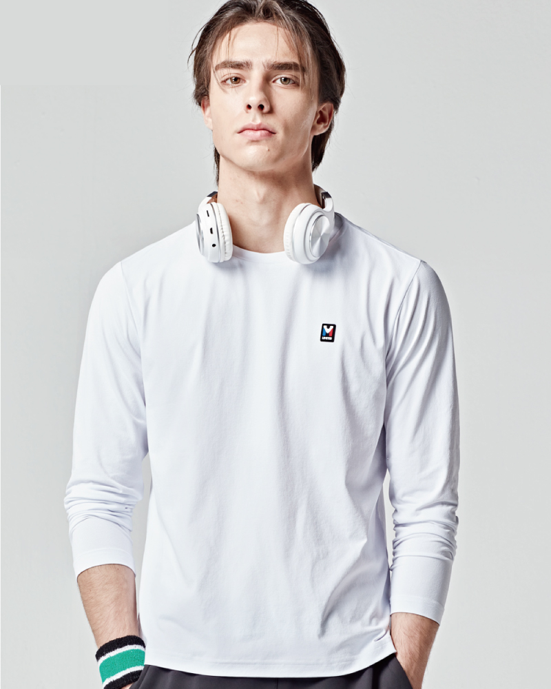 신축성과 부드러운 촉감의 소재로 수분 흡수력과 형태 회복력이 우수한 고급스러우면서도 캐쥬얼한 폴리 라운드 긴팔 제품.