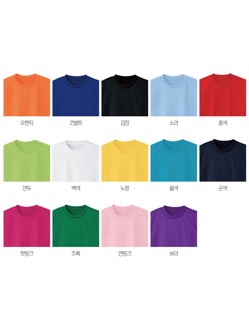 14개 색상 , 고급형 20수 코마사 면 반팔 스타일로 어린이집 행사티 및 모임 단체티로 퀄리티 대비 가성비 최고의 아이템!!!!