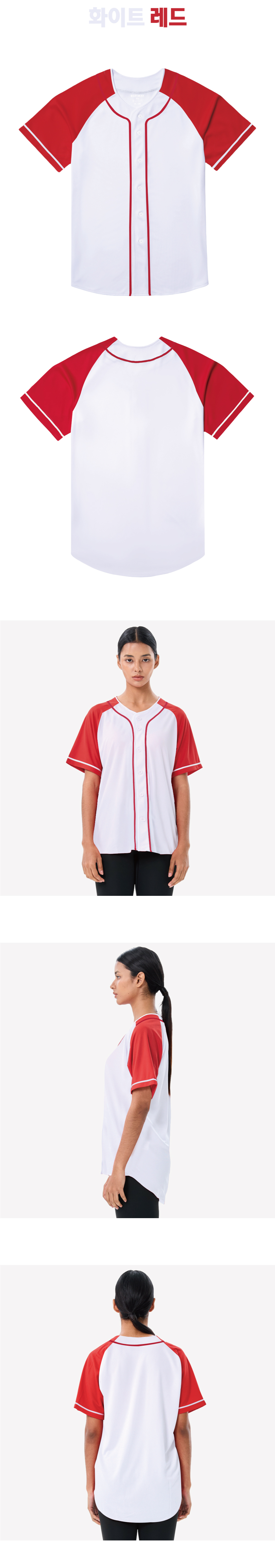 야구복 티셔츠 제작,체육대회 야구 반티-화이트/레드