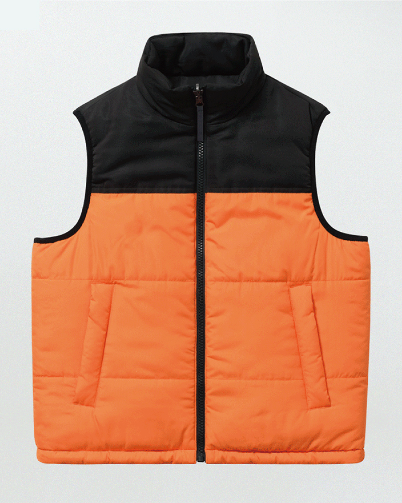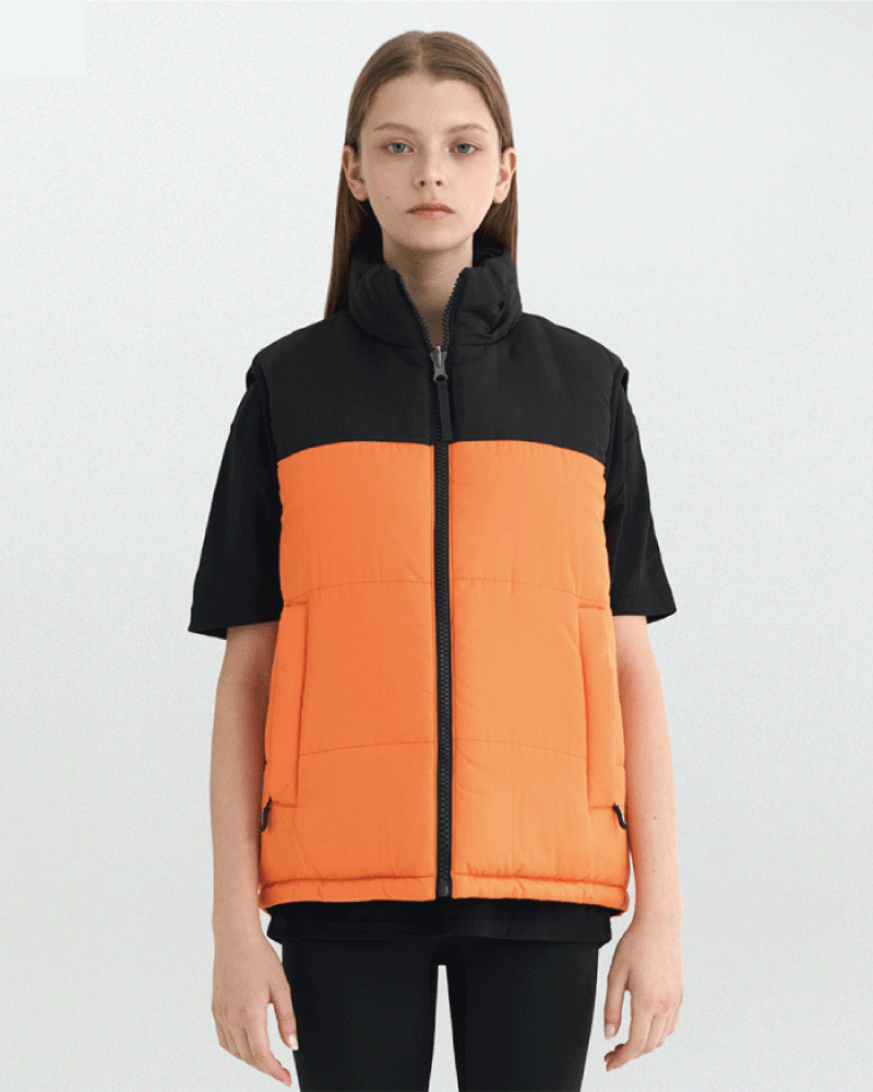 양면 패딩 조끼 제작,리버시블 동계 집업 패딩 조끼 DKW 680-오렌지/블랙 (남여공용)