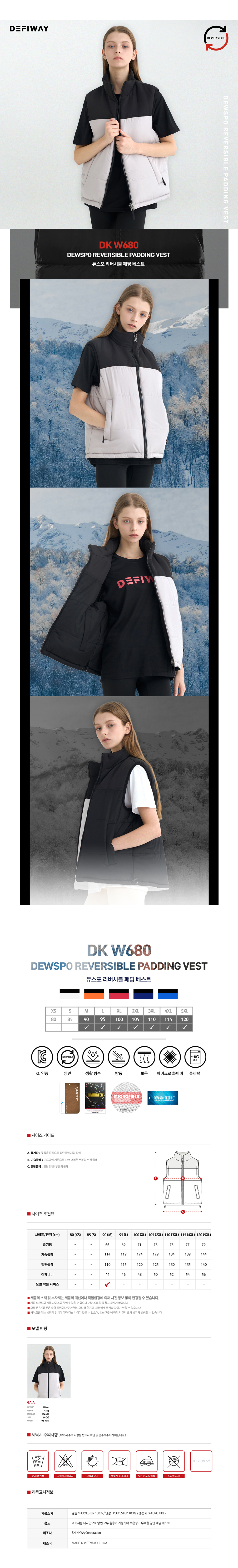 패딩조끼 하나로 두가지 컨셉을 연출 할수 있는 리버시블 스타일의 듀스포 소재의 패딩 조끼로 축구 배구 농구 등 팀스포츠 활동에 적합한 기능적인 디자인