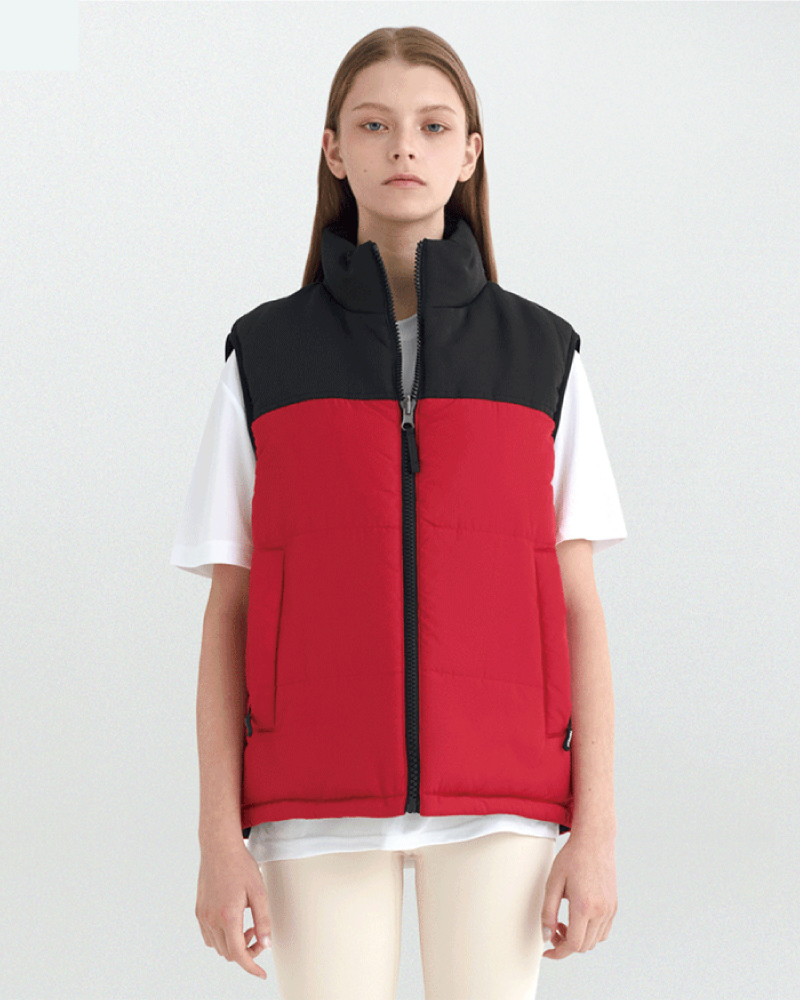 양면 패딩 조끼 제작,리버시블 동계 집업 패딩 조끼 DKW 680-레드/블랙 (남여공용)
